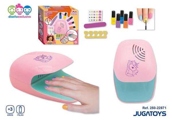 Adquiere ahora el Conjunto de Uñas con Secador y Accesorios de ponteguap@ y dale a tu hija la oportunidad de explorar su creatividad y divertirse como una verdadera profesional de la belleza. ¡Este completo set de manicura es el regalo perfecto para cualquier ocasión!