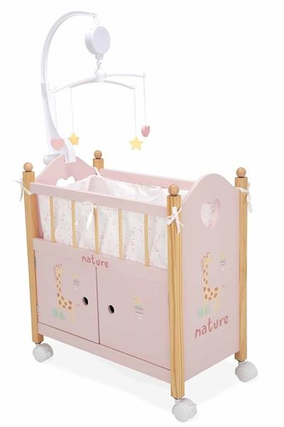 La cuna armario nature destaca por su diseño elegante y funcional. Con unas dimensiones de 50,50x27x54 cm, ofrece el espacio ideal para que las muñecas descansen plácidamente. El carrusel incorporado añade un toque mágico y relajante, invitando a las pequeñas a crear historias y momentos especiales alrededor de sus muñecas. Esta cuna de madera juguete está fabricada con materiales de alta calidad, garantizando durabilidad y seguridad para las niñas.