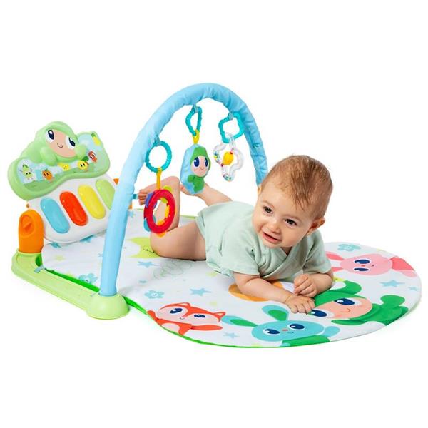 Este gimnasio interactivo cuenta con un piano integrado que permite a tu bebé crear sus propias melodías. Al presionar las teclas, se activan diferentes sonidos y luces, lo que ayuda a desarrollar la coordinación mano-ojo y la comprensión de causa y efecto. Además, el gimnasio incluye otros elementos interactivos, como sonajeros, mordedores y espejos, que ofrecen una variedad de texturas, formas y colores para explorar.