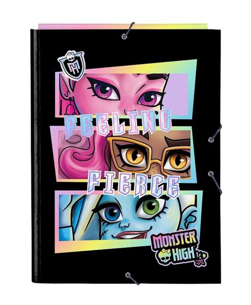 Con su atrevido diseño de Monster High, esta carpeta folio llamará la atención de todos. Las tres solapas interiores garantizan que los papeles se mantengan seguros, evitando que se pierdan o se arruguen.